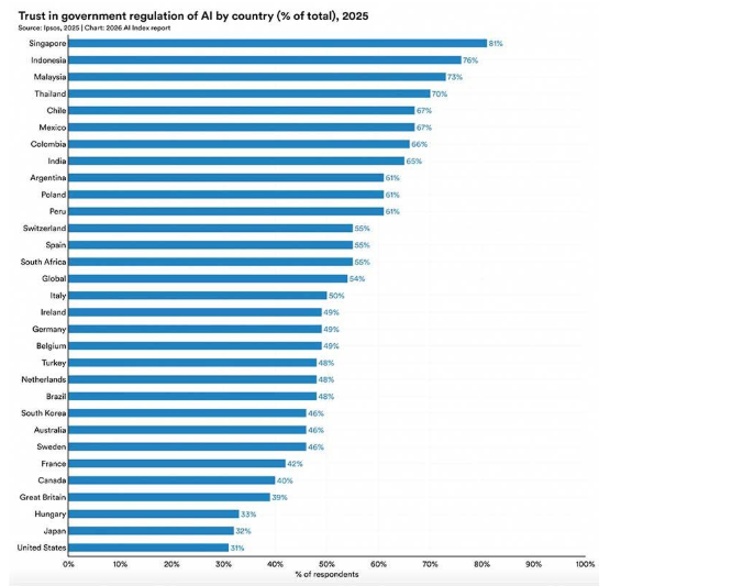 3、�� 斯坦福大学人工智能指数:53% 采用率,31% 信任度